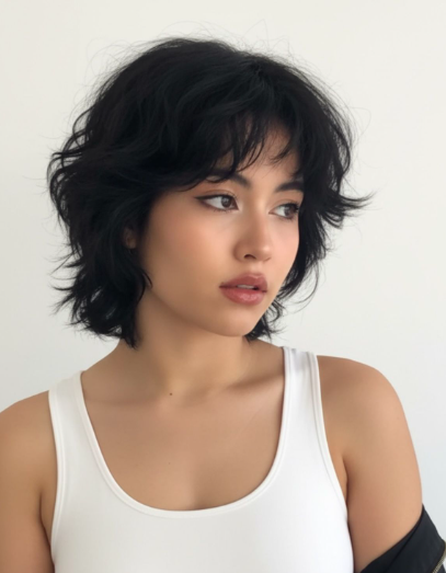 This is probably my personal favorite right now. The messy modern shag embraces imperfection, which is honestly freeing. Thick wavy hair already has texture, so instead of fighting it, this cut celebrates it. Layers are intentionally uneven, slightly piecey, and full of movement. I’ve noticed that when clients stop trying to make their waves behave, this cut shines. I usually recommend a lightweight styling cream and a quick scrunch. That’s it. The result feels undone but stylish — like you woke up cool. To be fair, it does need the right layering to avoid looking bulky. But once that shape is there, it’s one of the easiest short shag variations to maintain.