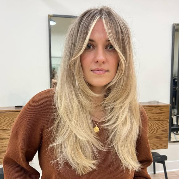 A V-cut shag features layers that create a V shape at the back, adding dimension and movement. It’s a great way to keep the length while adding texture and style.