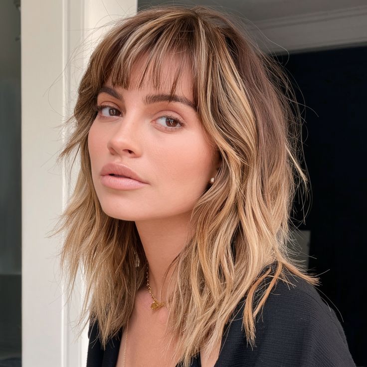 Shag haircut with soft fringe is beautiful for thin hair because it frames the face gently while creating fullness through layered movement. The fringe adds depth at the front, making hair appear thicker and more balanced. The layers throughout the cut give volume and texture without removing too much length. This style works wonderfully for straight or slightly wavy hair. The soft fringe blends naturally with the shag layers, keeping the look harmonious and flattering. It’s easy to style with light mousse or simple blow-dry. This haircut feels calm, stylish, and modern while keeping thin hair lively, light, and full of natural body all day long.