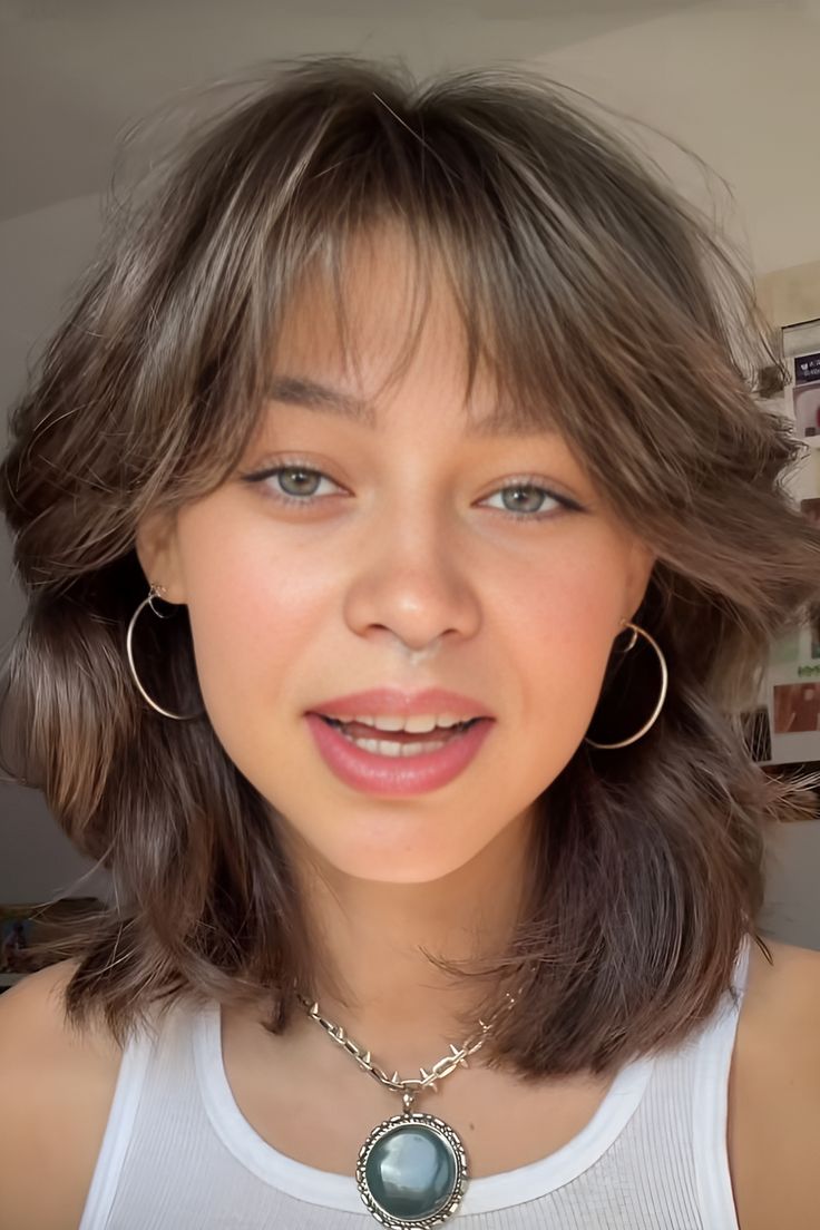 A minimal shaggy lob with fringe focuses on simplicity and clean shape. I like how subtle layers add movement without overwhelming the style. The fringe keeps the look fresh and modern. This haircut feels easy to style and comfortable to maintain. I enjoy how it grows out nicely and still looks good between trims. It’s perfect if you prefer understated styles with a modern touch. For me, this look feels calm, chic, and effortlessly stylish for everyday life.