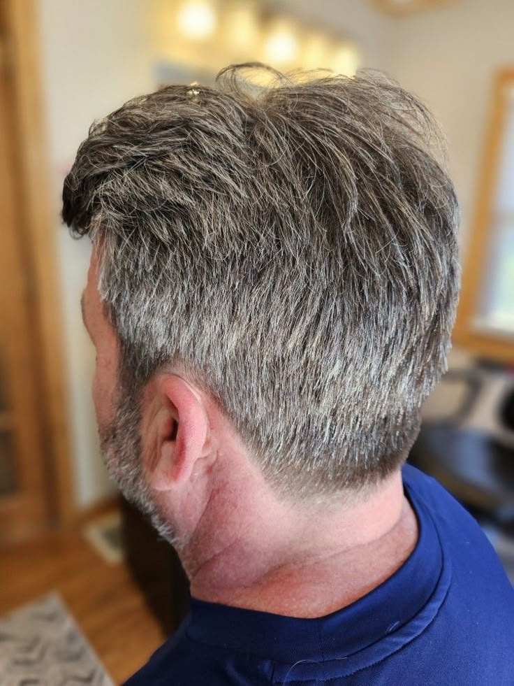 This updated crew cut keeps things classic while adding a gentle fade for a modern touch. I love how the short length makes daily care incredibly easy while the fade sharpens the overall silhouette. The top stays just long enough to avoid looking harsh or severe. This style suits gray hair beautifully and works for most face shapes. Styling is minimal, often nothing more than quick drying after a shower. It feels clean, confident, and ideal for men who want something simple, masculine, and timeless.
