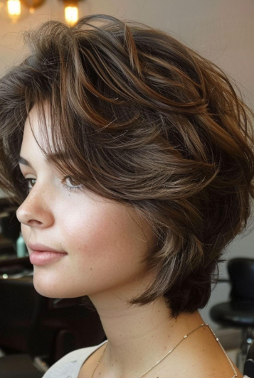 This is my comfort-zone haircut for thin, fine hair. A layered short bob gives you shape without sacrificing density, and that balance matters more than people think. I like layers that are subtle, not overdone. Too many layers can make fine hair look stringy, which I’ve learned the hard way.
