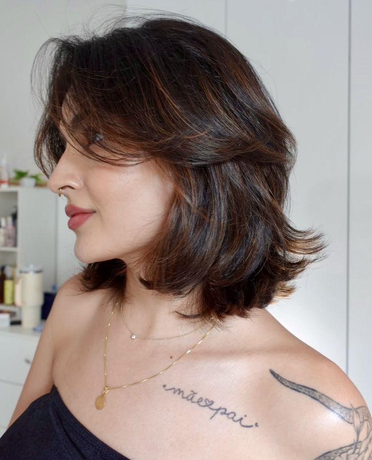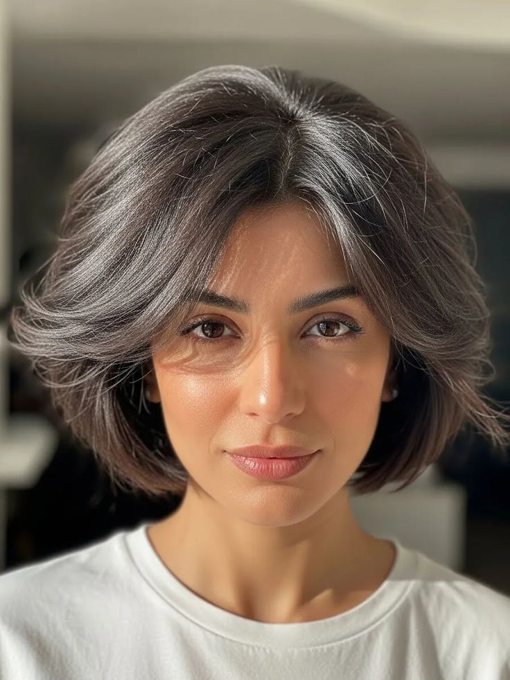 This short layered bob adds the perfect amount of movement while keeping the look clean and stylish. The layers create soft texture that keeps the hair from falling flat and helps frame an oval face naturally. I love how this cut feels modern and comfortable, making it easy to wear all day without fuss. It works well with both straight and wavy textures and always looks effortlessly put together. This hairstyle gives a fresh, youthful vibe and pairs beautifully with both casual outfits and more dressed up looks.