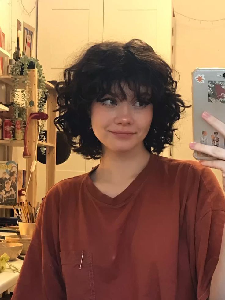 Short Curly Wolf Cut With BangsShort Curly Wolf Cut With Bangs