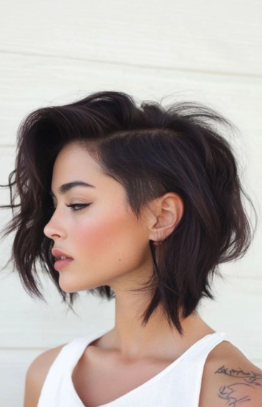 The Undercut Bob With Side Bangs is a bold yet stylish haircut that blends sharp edges with soft movement. It adds a modern, edgy touch while keeping the look balanced, trendy, and easy to style.
