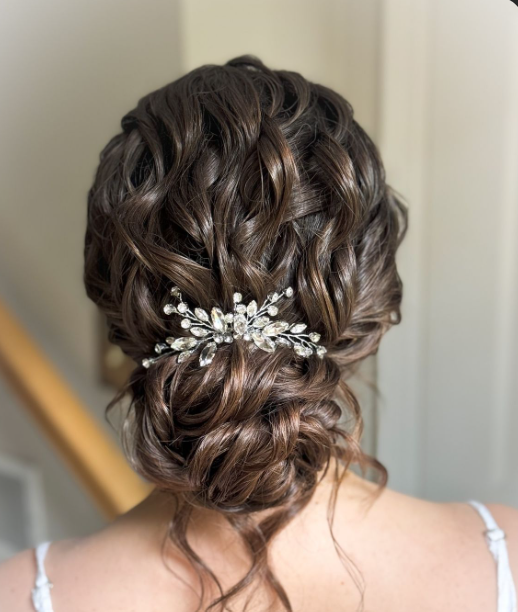 For an elegant finish, I smooth only the necessary areas and leave the rest textured. A few face-framing curls soften the whole look. In my opinion, curly wedding updos should never look stiff. They should feel like an elevated version of your everyday curls. That’s when they feel truly beautiful—and truly you.