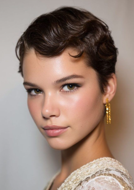 I usually keep one side sleek and let the waves do the talking on the other. In my experience, less is more here. A bit of shine product, careful finger shaping, and that’s it. I’ve seen models who were unsure about their pixie suddenly fall in love with it again after this style. To be fair, that’s one of the reasons I love vintage looks — they help people see their hair differently.