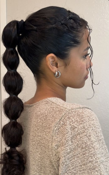 I create a basic ponytail, then add bands down the length, gently puffing each section. To be fair, I never over-tighten. The bubbles should feel soft. I’ve seen players run, jump, and dive without the ponytail collapsing, which makes this style surprisingly game-ready.